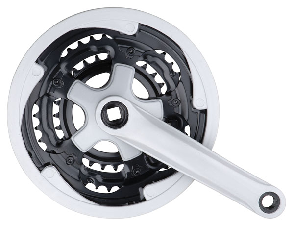 trojpřevodník s krytem pro 6/7 kolo, ocelové převodníky 48/38/28, nýtované, plastový kryt,délka klik 170 mm, doporučená délka osy 122 mm