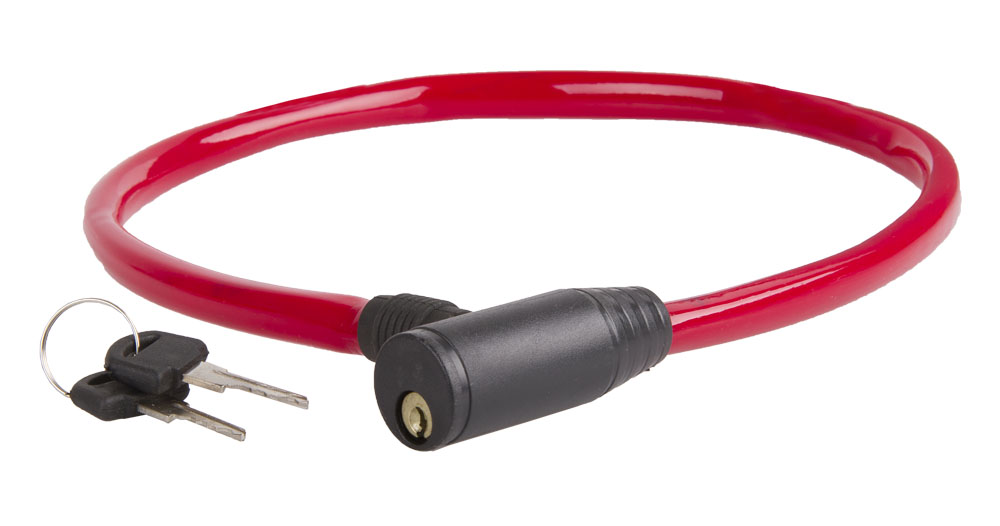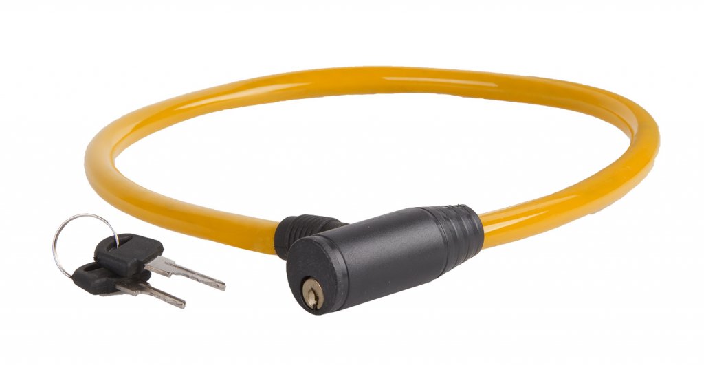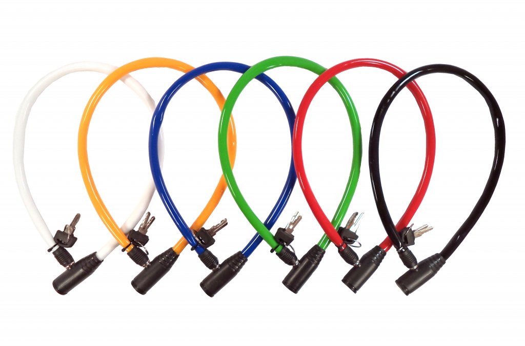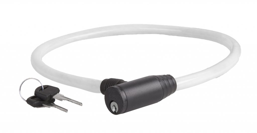 - Průměr lanka: 5 mm - Délka lanka: 60 cm - Automatické zamykání - Materiál: ocelové lanko potažené plastem - Barva: mix - modrý, zelený, červený, oranžový, bílý -Balení obsahuje: 1 zámek a 2 klíče