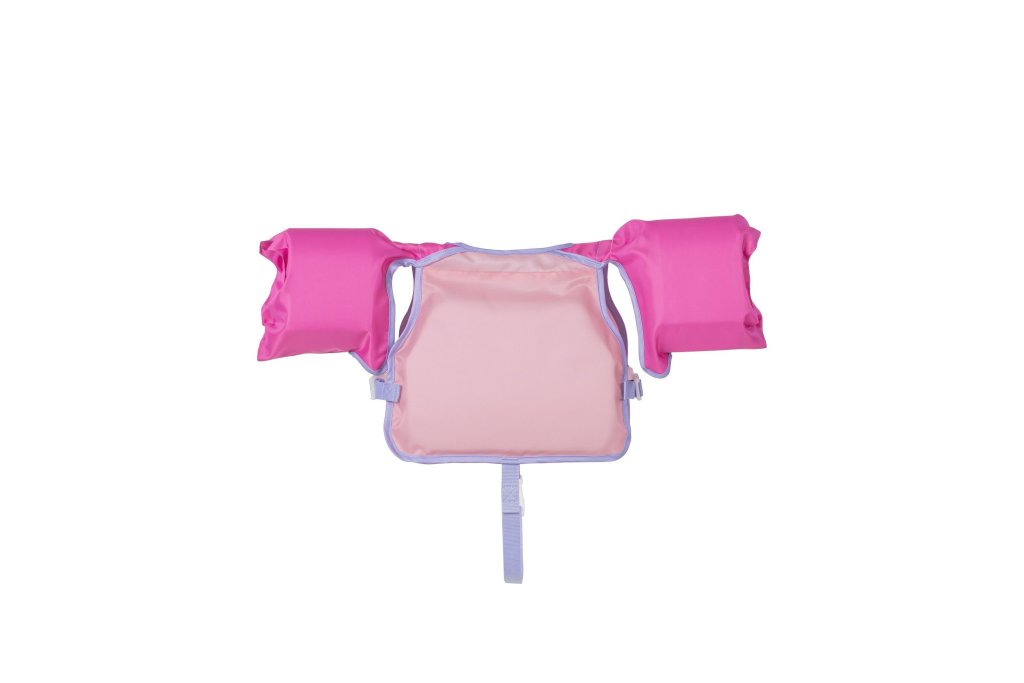 Textilní plavecká vesta s vloženými plováky na prsou a na zádech a s potiskem Disney Minnie. Vesta je vyrobena z příjemného nenasáklivého materiálu - PES. Uvnitř vesty jsou zašité dva plováky z lehké pěnové hmoty na zádech a na prsou. Dva další plováky jsou na ramenech a navlékají se na ruce dítěte. Vesta má velikost kolem prsou 56 cm a je doporučená pro děti od 3 do 6 let a do limitní hmotnosti 30 kg. Vesta se navléká přes hlavu a současně se navlékají i nárameníky - rukávky. Tím je docíleno bezproblémové držení vesty na těle dítěte. Pro bezpečné upnutí vesty na tělo je ve spodní části hrudní a zádové části pás s plastovou přezkou, který se upíná dítěti u mezi nohy. Tím je zabezpečeno, že vesta pevně drží na těle a není možné, aby se při plavání došlo ke sklouznutí z těla dítěte. Funkčnost vesty je ověřena testováním na bezpečnost.