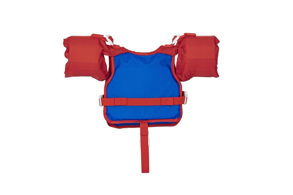 Textilní plavecká vesta s vloženými plováky na prsou a na zádech a s potiskem Spiderman. Vesta je vyrobena z příjemného nenasáklivého materiálu - PES. Uvnitř vesty jsou zašité dva plováky z lehké pěnové hmoty na zádech a na prsou. Dva další plováky jsou na ramenech a navlékají se na ruce dítěte. Vesta má velikost kolem prsou 56 cm a je doporučená pro děti od 3 do 6 let a do limitní hmotnosti 30 kg. Vesta se navléká přes hlavu a současně se navlékají i nárameníky - rukávky. Tím je docíleno bezproblémové držení vesty na těle dítěte. Pro bezpečné upnutí vesty na tělo je ve spodní části hrudní a zádové části pás s plastovou přezkou, který se upíná dítěti u mezi nohy. Tím je zabezpečeno, že vesta pevně drží na těle a není možné, aby se při plavání došlo ke sklouznutí z těla dítěte. Funkčnost vesty je ověřena testováním na bezpečnost.