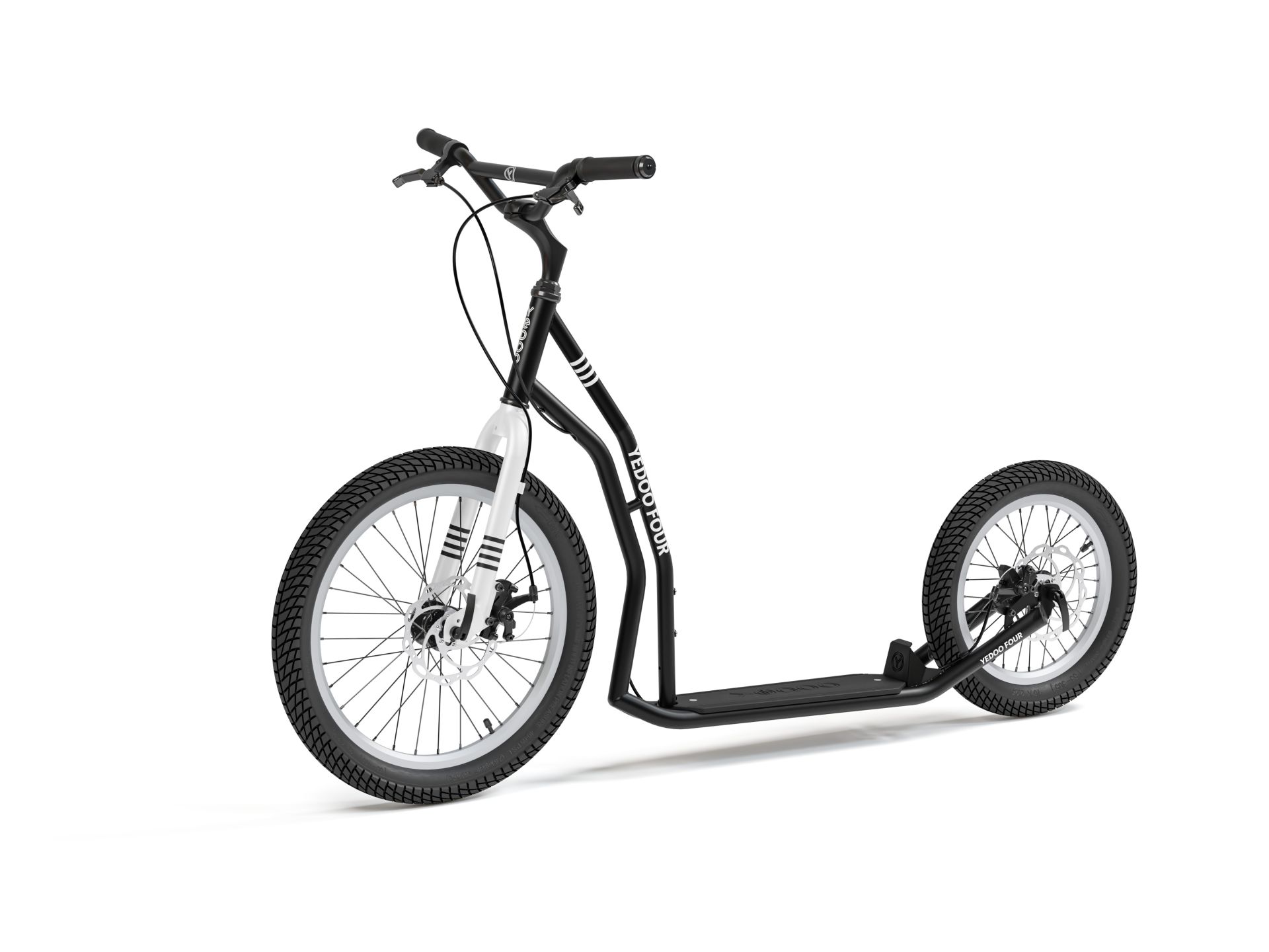 Vypadá nevinně, ale nenechte se zmást, tahle koloběžka je divoch stavěný na všechno. Čtyřka vám dá jistotu a možná i kapku adrenalinu, bez zbytečných kudrlin. Spolehlivé komponenty a veškerá technologická převaha dvacetileté tradice značky Yedoo poskytují takřka nezničitelnému stroji suverénní rychlost a pohyblivost v městské džungli – a vlastnosti 4x4, jakmile se vysvobodíte z předměstí.