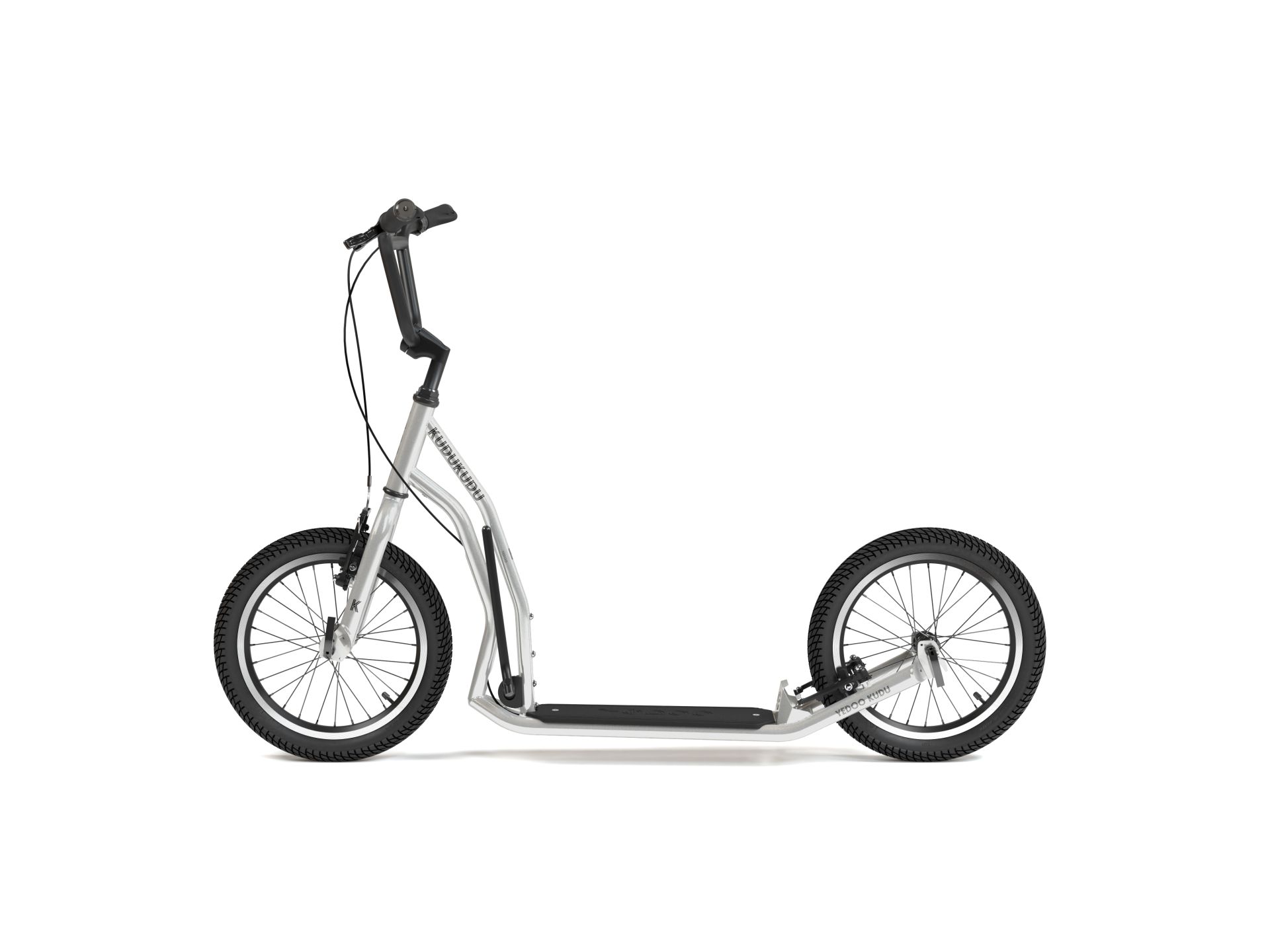 Štíhlá městská koloběžka s instinkty antilopy – hbitá, elegantní a plná energie. Rychlá kola 16"/16" s nafukovacími plášti hladce přejedou i rozbité chodníky.