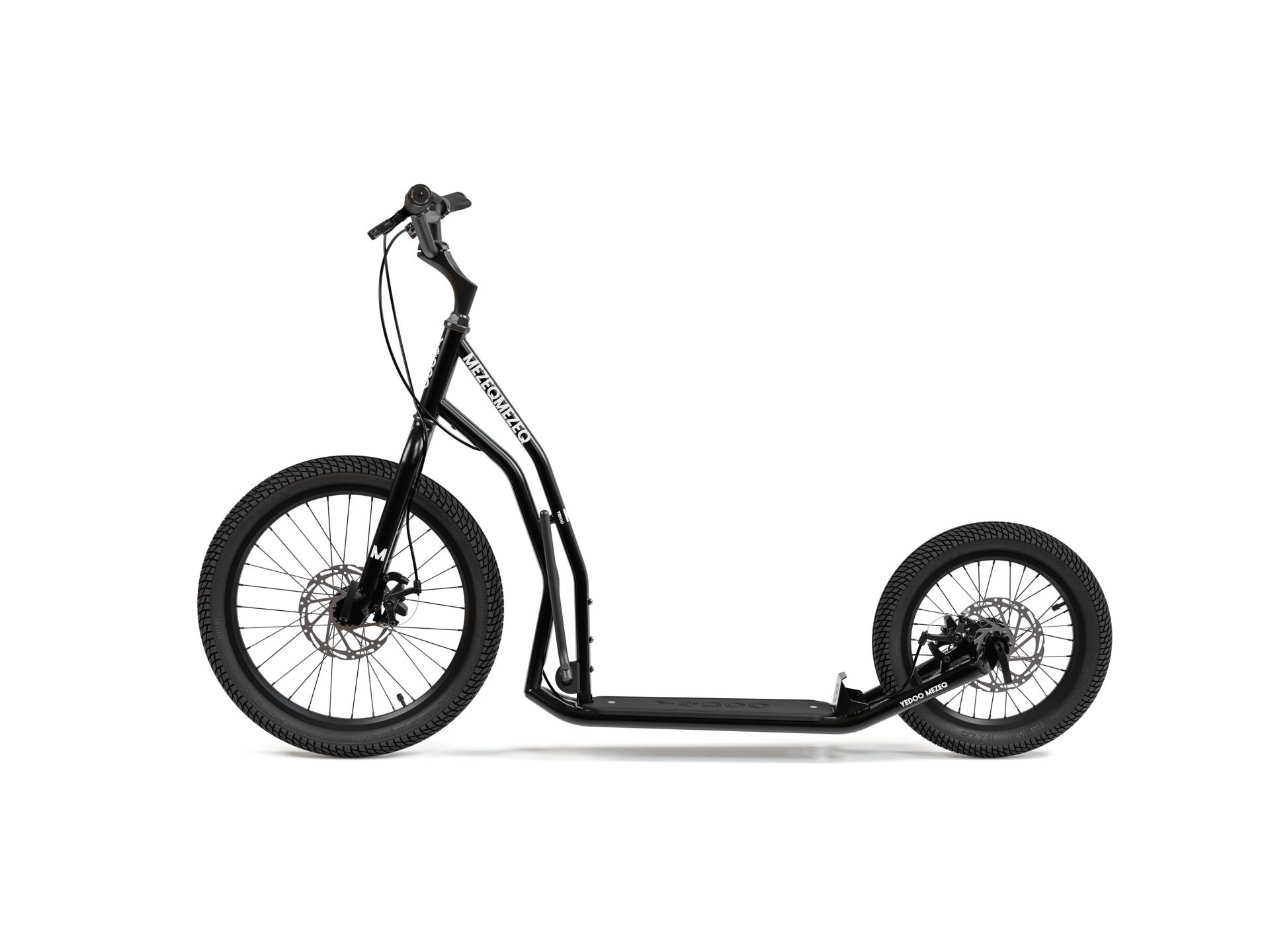 Odolná terénní koloběžka s pevným ocelovým rámem zvládne všechno, co si umane – kořeny, bahno, vyschlé koryto i městský offroad. Má kotoučové brzdy na obou kolech, širší pláště, ideální poměr kol 20“/16“, praktický stojánek a odnímatelné protiskluzové stupátko. Dejte jí do těla, schválně, kdo vydrží víc.