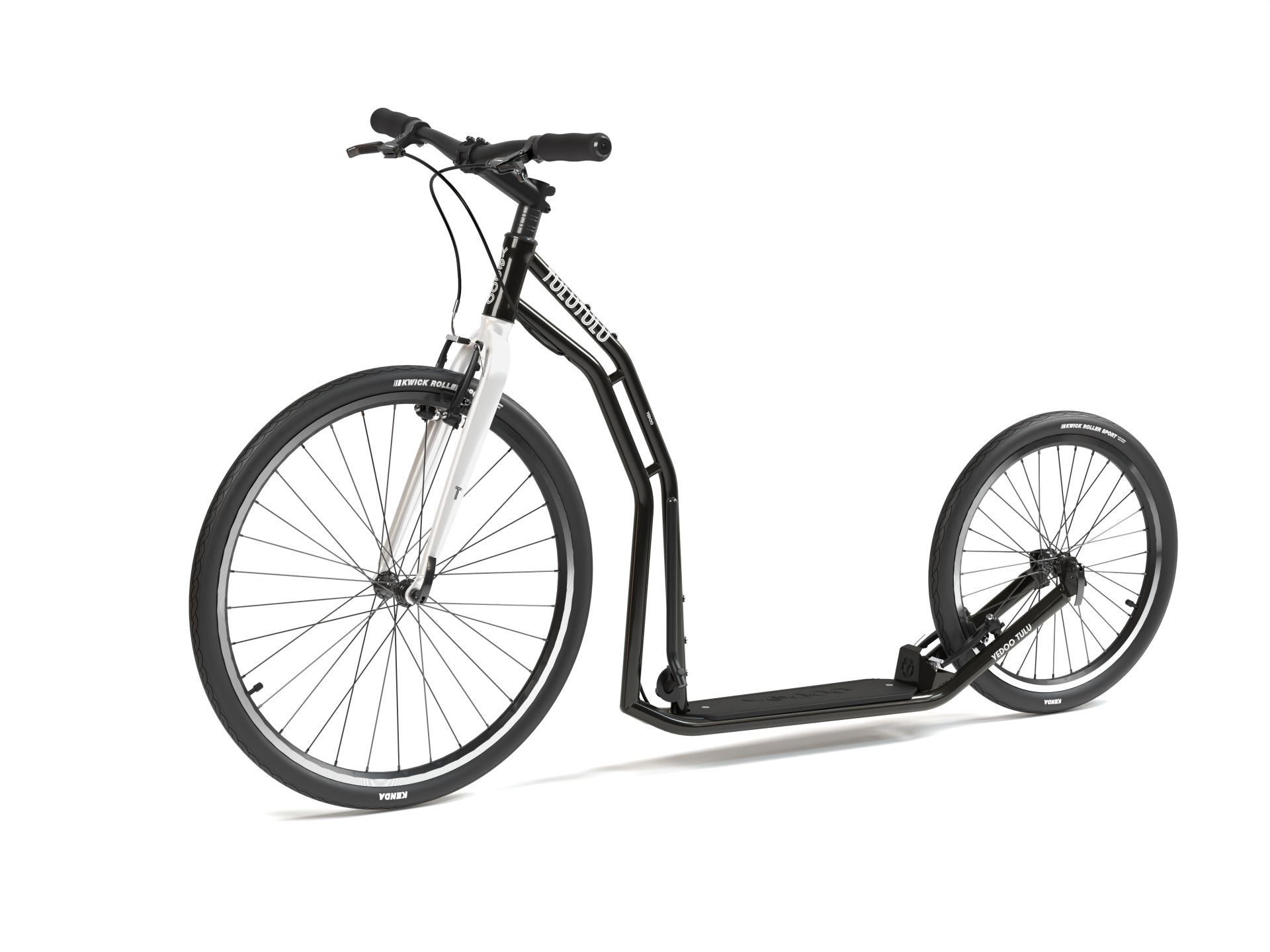 Universální cestovní koloběžka, která vás zaveze až na konec světa. Velká kola 26"/20" s všestrannými plášti sviští po asfaltu i polňačkách.