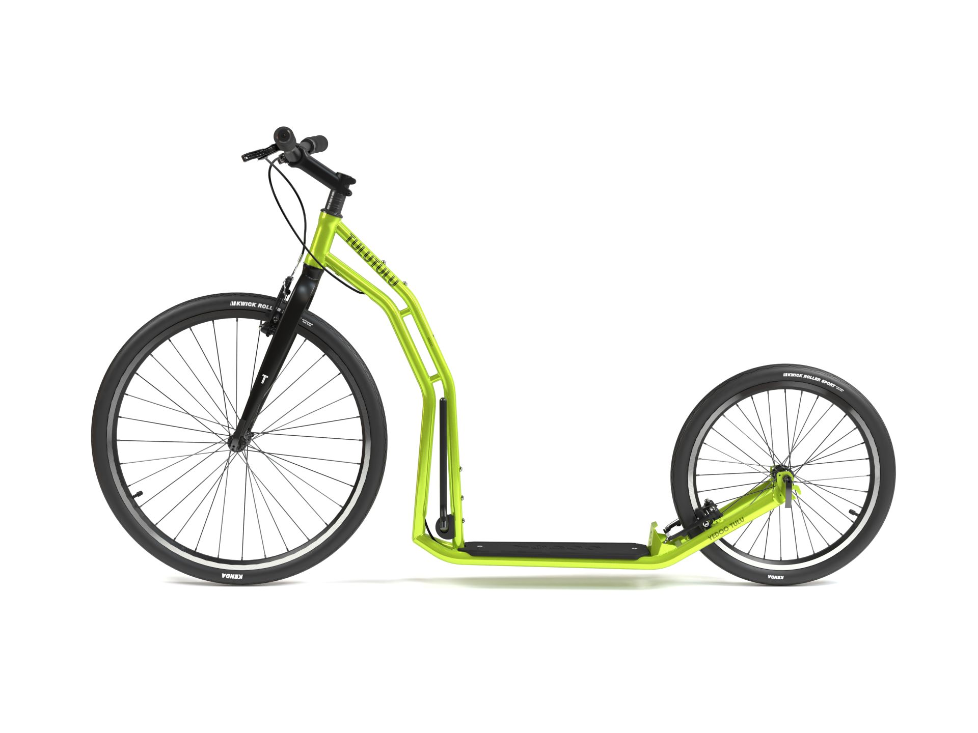 Universální cestovní koloběžka, která vás zaveze až na konec světa. Velká kola 26"/20" s všestrannými plášti sviští po asfaltu i polňačkách.