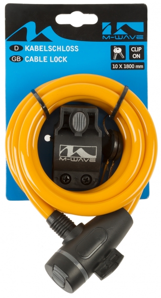 Průměr lanka: 10 mm Délka řetězu: 1800 mm Držák k uchycení na sedlovku nebo k rámu Ochranný kryt Barva: oranžová transparentní Balení obsahuje 2 klíče Balení: karta M-Wave