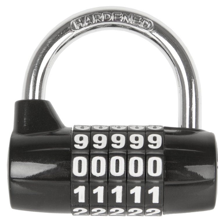 Zámek s pětimístným kódem Síla zámku: 7 mm Kód je měnitelný Materiál: kalená ocel + tvrzený plast Vnitřní rozměr zámku: 40 x 30 mm Barva: černo-stříbrná Balení: karta M-Wave