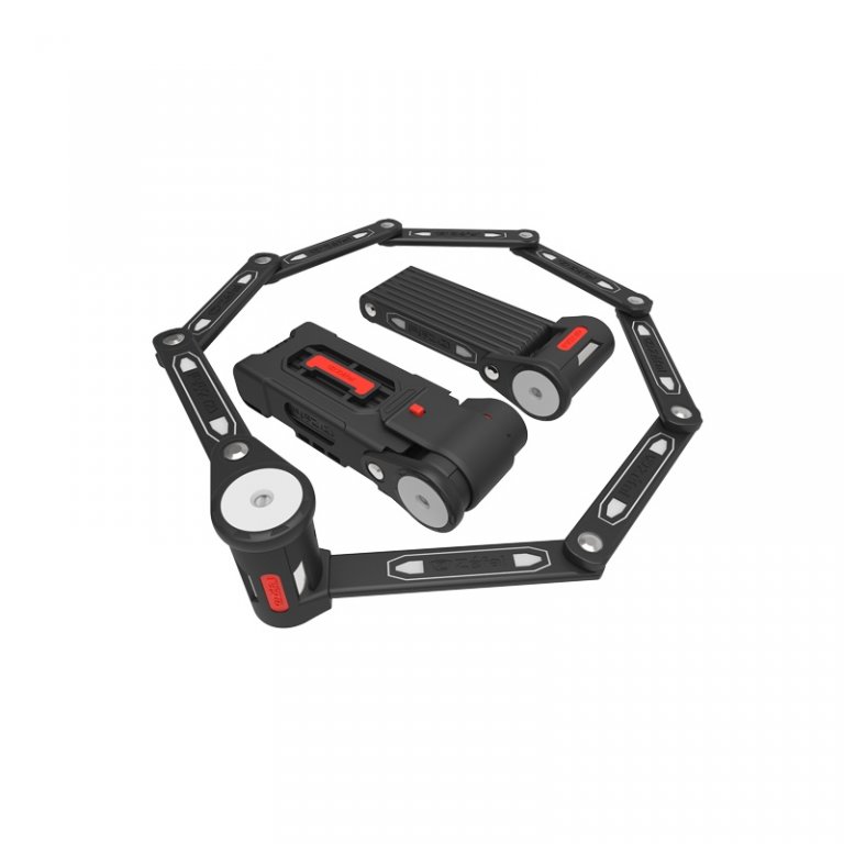 Skládací zámek z tvrzené oceli.Délka 95 cm.Včetně 3 klíčů.